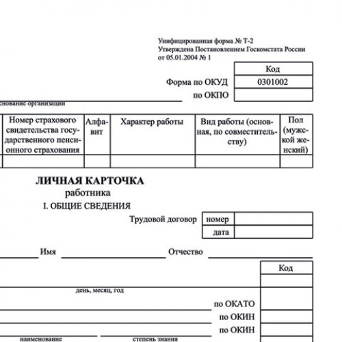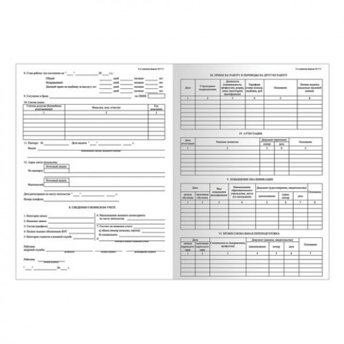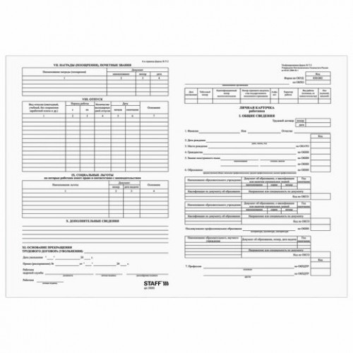 Бланк бухгалтерский, офсет плотный, "Личная карточка работника", форма Т-2, А4, 2 л.