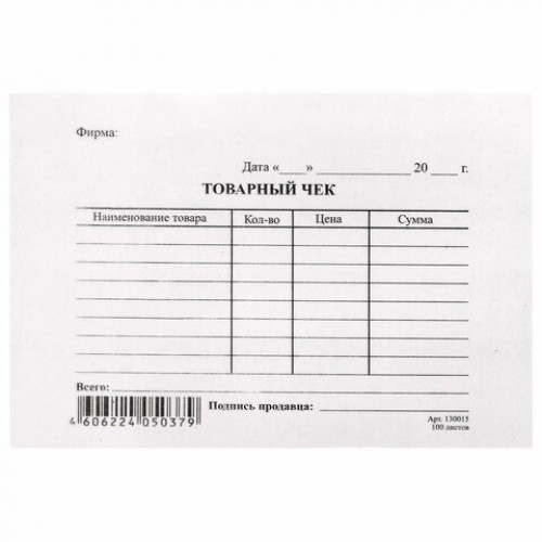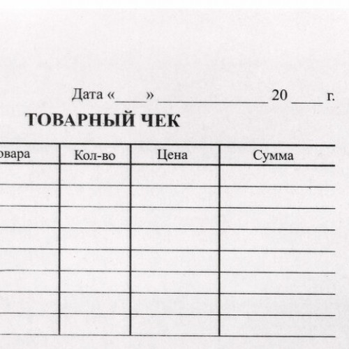 Бланк бухгалтерский типографский "Товарный чек", А6, склейка 100 шт.