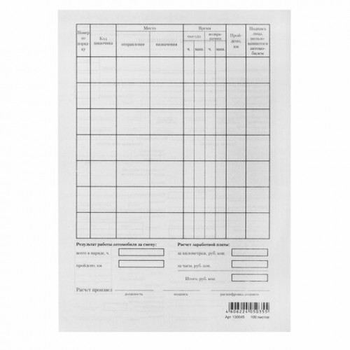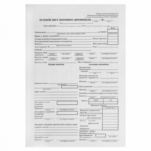 Бланк бухгалтерский типографский "Путевой лист легкового автомобиля", А5, склейка 100 шт.