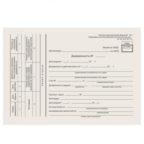 Бланк бухгалтерский типографский "Доверенность", А5, склейка 100 шт.