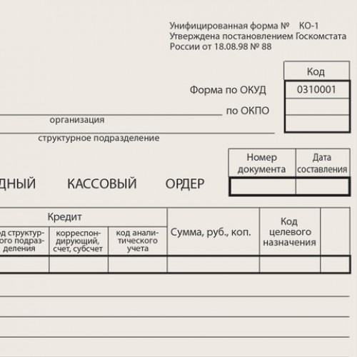 Бланк бухгалтерский типографский "Приходный кассовый ордер", А5, склейка 100 шт.