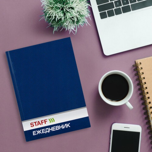 Ежедневник недатированный А5, ламинированная обложка, STAFF, 128 л., синий