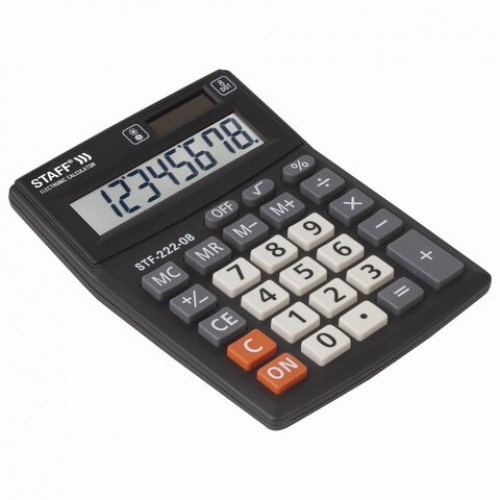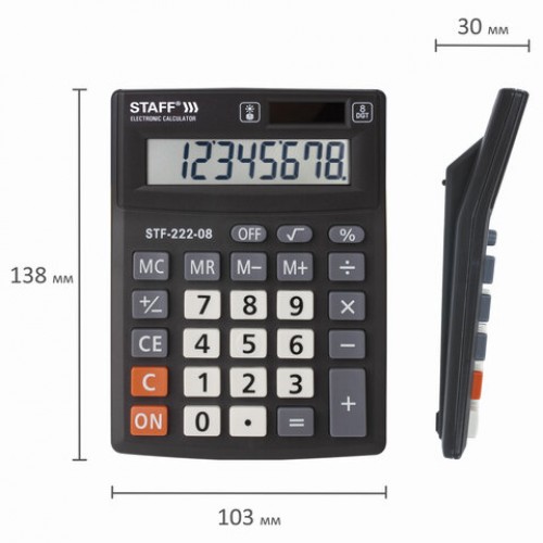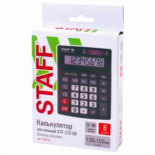Калькулятор настольный STAFF PLUS STF-222, компактный (138x103 мм), 8 разрядов, двойное питание
