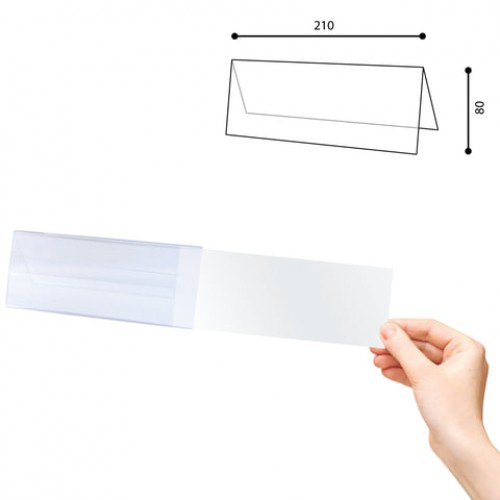 Изготовлена из прозрачного акрилового стекла. Горизонтальная двусторонняя табличка в форме "домика" предназначена для настольного размещения. Максимальная высота вставляемого листа - 80 мм, максимальная ширина вставляемого листа - 210 мм. В защитной плёнке.