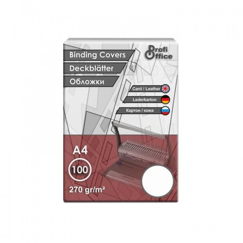 Обложки для переплета ProfiOffice, А4, картонные, текстура кожа, 270 г/кв.м, белые, 100 шт