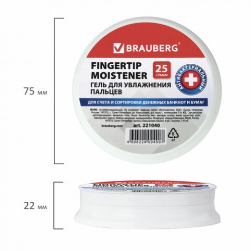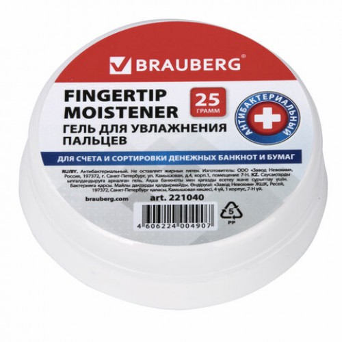 Гель для увлажнения пальцев BRAUBERG облегчает работу при подсчете денег, перелистывании документов, бюллетеней, подписных листов и т.д.