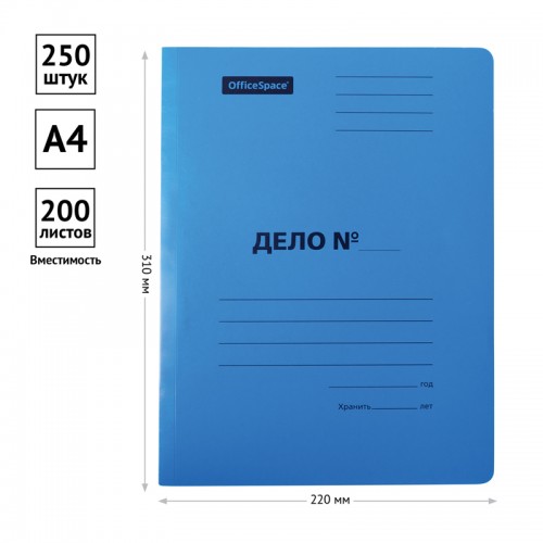 Папка размером 310*220 мм изготовлена из мелованного картона плотностью 300 г/м2. Обложка изделия - синяя с полями для надписей. Механизм скоросшивателя позволяет надежно зафиксировать бумагу для организации хранения и транспортировки.