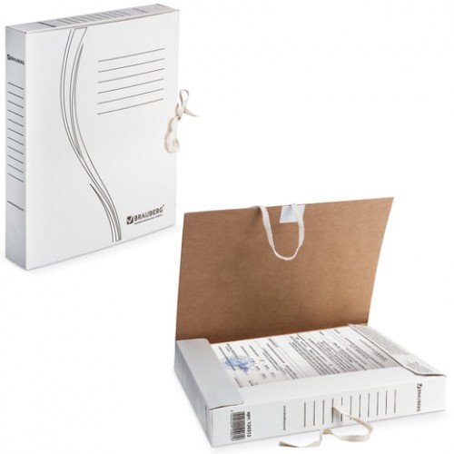 Папка архивная с завязками А4, 45 мм, до 400л, плотная, микрогофрокартон, БЕЛАЯ, BRAUBERG