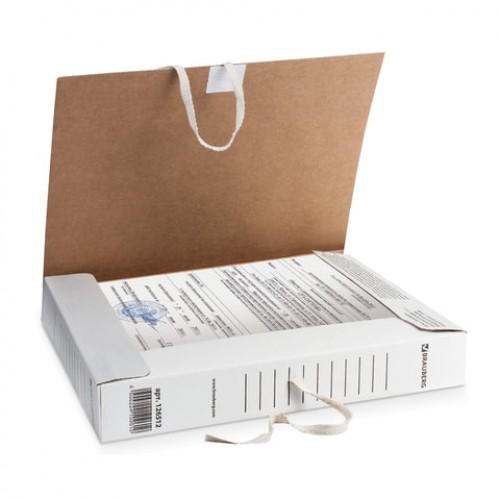 Предназначена для документов формата А4 и вмещает до 400 листов. Высота папки составляет 325 мм, ширина - 260 мм, а ширина корешка - 45 мм. Имеет повышенную прочность за счет использования качественного микрогофрокартона.