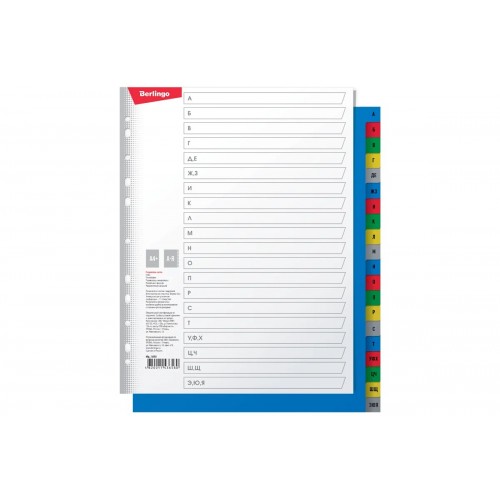 Пластиковый разделитель листов BERLINGO А4+, 20 листов, алфавитный А-Я, цветной