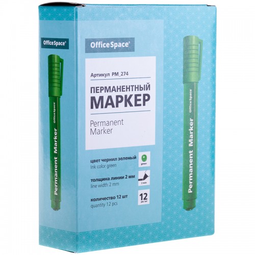 Маркер перманентный OfficeSpace "8004" зеленый, пулевидный, 2мм