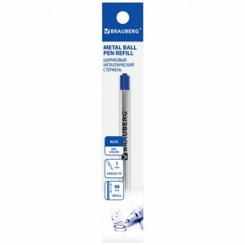 Стержень шариковый BRAUBERG, тип PARKER, металлический, 98 мм, линия письма 0,5 мм, подвес, синий