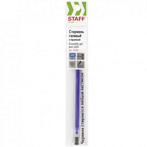 Стержень стираемый гелевый STAFF, 130 мм, СИНИЙ, узел 0,5 мм, линия письма 0,35 мм