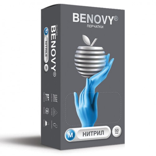 Перчатки нитриловые смотровые, 50 пар (100 шт.), размер M, BENOVY