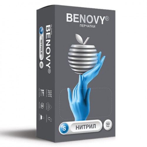 Перчатки нитриловые смотровые, 50 пар (100 шт.), размер S, BENOVY