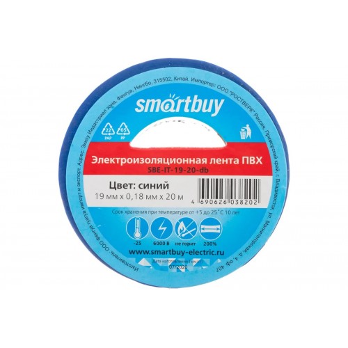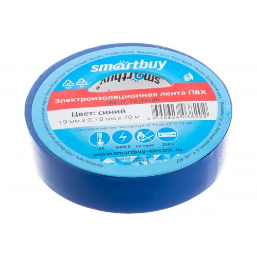 Изолента Smartbuy 0.18х19 мм, 20 метров, синяя