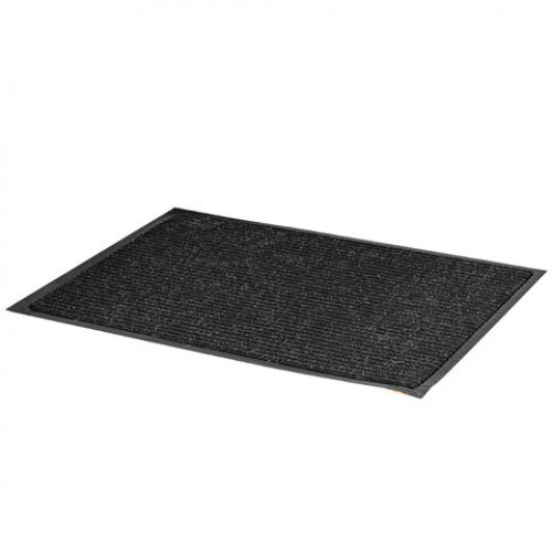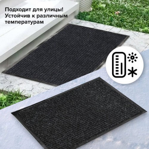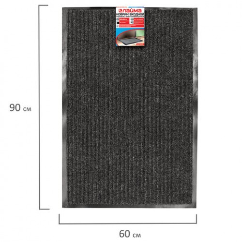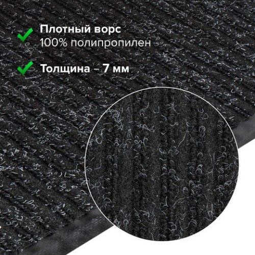 Коврик входной ворсовый влаго-грязезащитный 60х90 см, толщина 7 мм, ребристый, черный, LAIMA