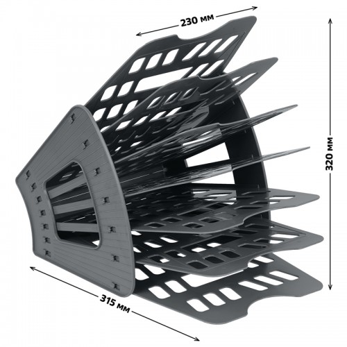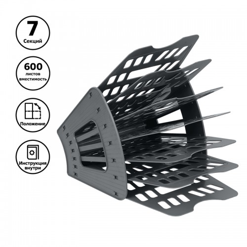Лоток для бумаг веерный СТАММ, 7-ми секционный, серый