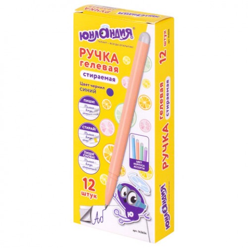 Ручка стираемая гелевая ЮНЛАНДИЯ "Лимонад", СИНЯЯ, прорезиненный корпус ассорти