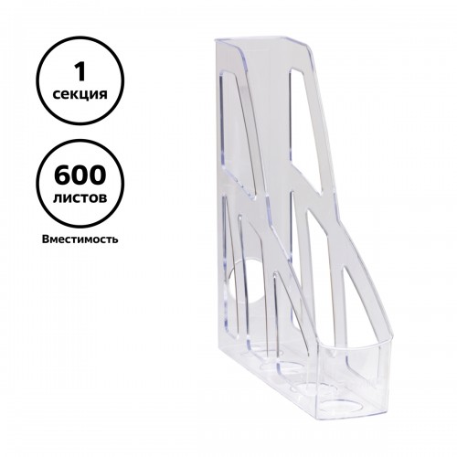 Лоток для бумаг вертикальный СТАММ "Лидер", прозрачный, ширина 75мм