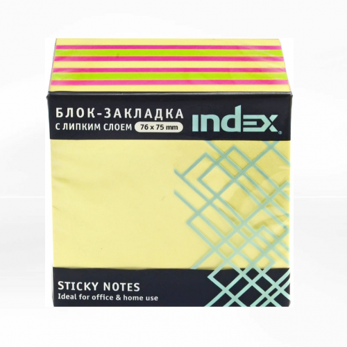 Бумага для заметок с липким слоем "Index" обязательно привлечет внимание к вашему сообщению. Листочки легко приклеиваются к любой поверхности, будь то бумага, корпус монитора, дверь. Не оставляют следов после отклеивания. Клеевой слой: 21 Н/м. Плотность бумаги: 75 г/м2.