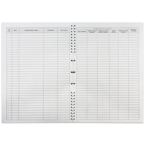 Внутренний блок имеет линовку, разработанную специально для учета доходов и расходов.