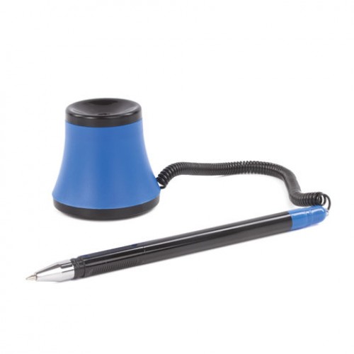 Корпус ручки прозрачный, подставка и детали ручки выполнены из пластика черного и синего цветов. Ручка крепится к подставке с помощью пружинки и фиксируется на любой ровной поверхности с помощью клейкого основания и с регулируемым углом наклона. Длина стержня составляет 136 мм. Диаметр основания - 5 см. Создает линию письма толщиной 0,35 мм. Цвет чернил - синий.