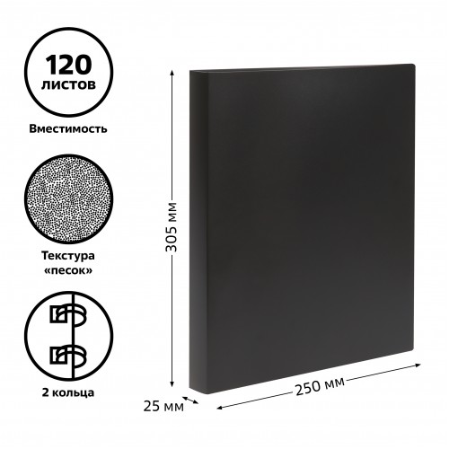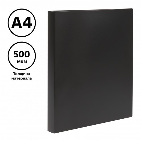 Папка на 2 кольцах СТАММ А4, 25мм, 500мкм, пластик, черная
