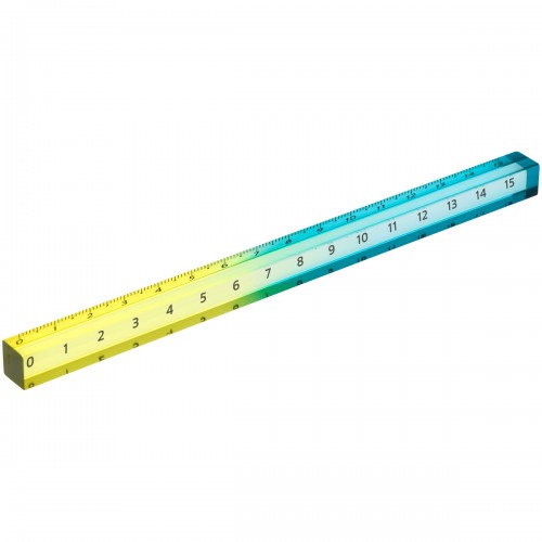 Линейка 15см. СТАММ четырехгранная, голубой/желтый