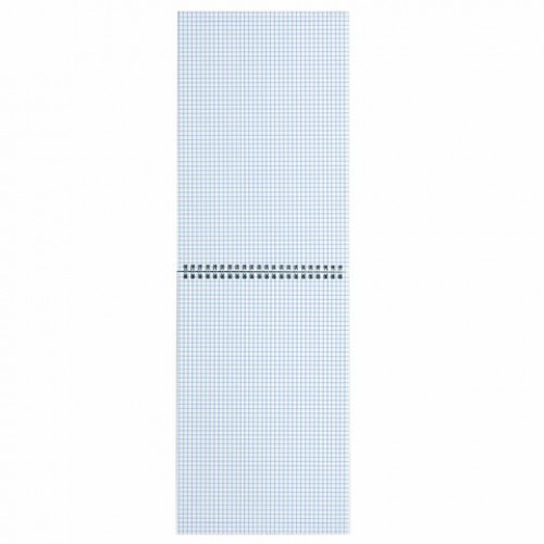 Блокнот формата А4 на гребне содержит 80 листов в клетку. Имеет жесткую подложку, позволяющую делать записи на весу. Гребень расположен сверху. Обложка выполнена из мелованного картона плотностью 190 г/м2. Внутренний блок состоит из белой офсетной бумаги плотностью 60 г/м2.