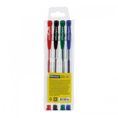 Набор гелевых ручек OfficeSpace 4 цв., 1 мм, европодвес