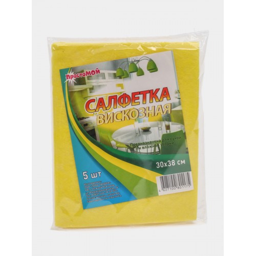 Салфетки вискозная от производителя "ПростоМОЙ" в количестве 5 штук размером 30х38. Подходит для протирки поверхностей домашнего интерьера. Отличительной особенностью является то, что она подходит для многократного применения.