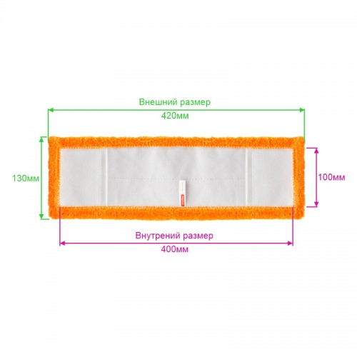 Тип насадки: плоская для складного флаундера. Материал: микрофибра. Крепление насадки: карманы. Максимальный объем впитывания: 120 мл. Размер насадки внешний: 42 х 13 см. Размер насадки внутренний: 40 х 10 см. Длина ворса: 0,5 см. Цвет: оранжевый.