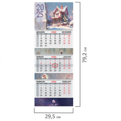 Календарь квартальный на 2025 г., 3 блока, 3 гребня, с бегунком, мелованная бумага, BRAUBERG EXTRA, "Сказка"