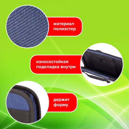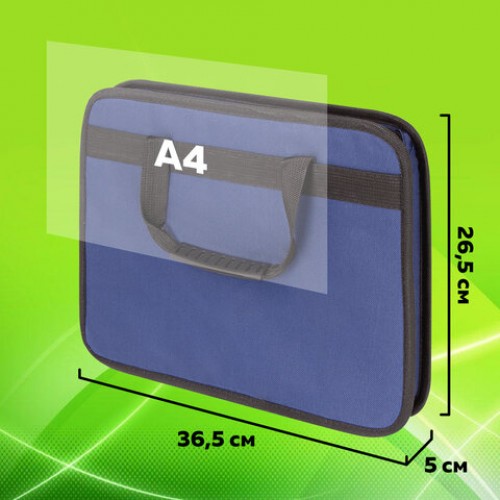 Папка на молнии с ручками STAFF, А4, твердые стенки, ткань, синяя