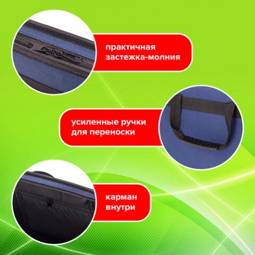 Тканевая папка на молнии STAFF "EVERYDAY" с прорезиненными ручками. Подойдет для документов формата А4. Жесткие стенки предотвращают замятие.