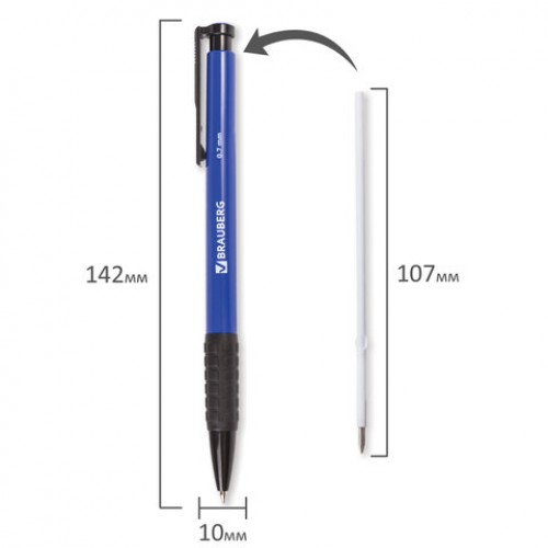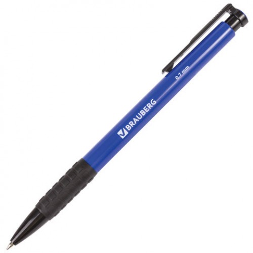 Ручка шариковая автоматическая с грипом BRAUBERG, синяя, узел 0,7 мм, линия письма 0,35 мм
