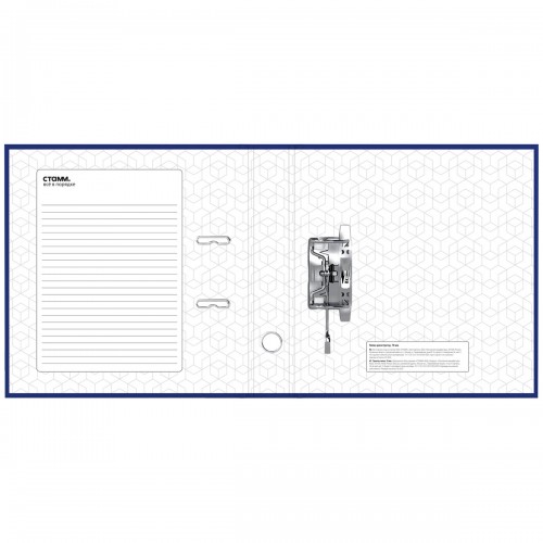 Папка-регистратор СТАММ серии «Офис» с арочным механизмом идеальна для создания архива и экономии офисного пространства. Размер папки – 320*290*70 мм. Минималистичный классический дизайн. Изготовлена из жесткого износостойкого картона с односторонним покрытием из бумвинила. Внутреннее покрытие выполнено из бумаги. Папка имеет арочный механизм из качественного металла. Конструкция разработана с учетом всех особенностей эксплуатации. Эргономичное отверстие в корешке помогает быстро снять папку с полки. На корешке папки есть ярлык для маркировки. На внутренней стороне обложки есть поле для записи.