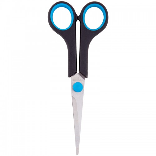 Ножницы офисные, длина 16см, лезвия с заточкой, черные, упакованы в ПВХ чехол с европодвесом.Предназначены для резки бумаги и картона.