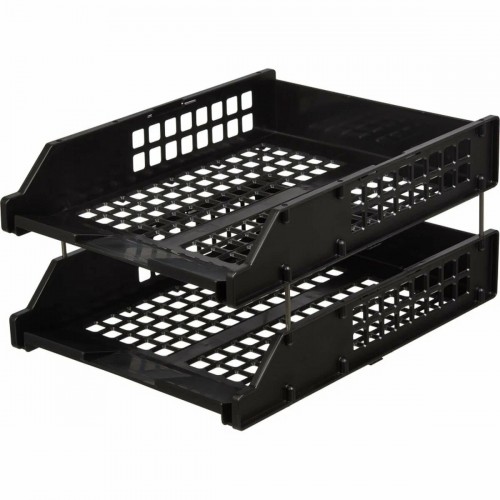 Лоток для бумаг горизонтальный Стамм "Strong", 2 лотка на металл. стержнях, черный